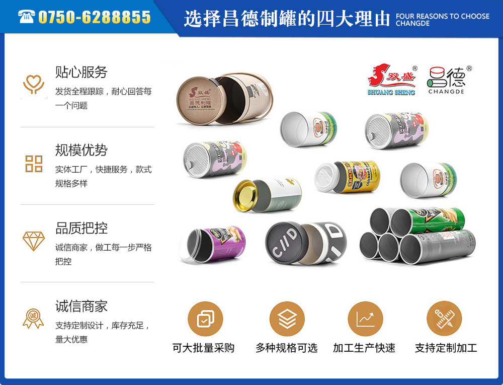 江門市昌德五金制罐有限公司位于江門與珠海臨近的古井鎮(zhèn),是專業(yè)生產(chǎn)紙罐,食品紙罐系列的包裝研制、開發(fā)、生產(chǎn)的廠家,從建廠至今,公司本著“重合同、守信用”的原則,以“質(zhì)量求生存,客戶至上”為經(jīng)營宗旨,贏得了很好的信譽(yù),公司擁有國內(nèi)一流的技術(shù)設(shè)備和多年的生產(chǎn)經(jīng)驗。年產(chǎn)休閑食品紙筒500萬左右,紙筒2000萬支左右,易拉罐,食品罐等1000萬左右,產(chǎn)品銷往各地。我廠是以高科技為先導(dǎo),以技術(shù)創(chuàng)新整合為手段,成為迅速崛起的專業(yè)性包裝企業(yè),憑借艱苦的創(chuàng)業(yè)精神和集體智慧,采用規(guī)范的現(xiàn)代企業(yè)運行機(jī)制,形成具有鮮明特色的企業(yè)文化模式和管理...